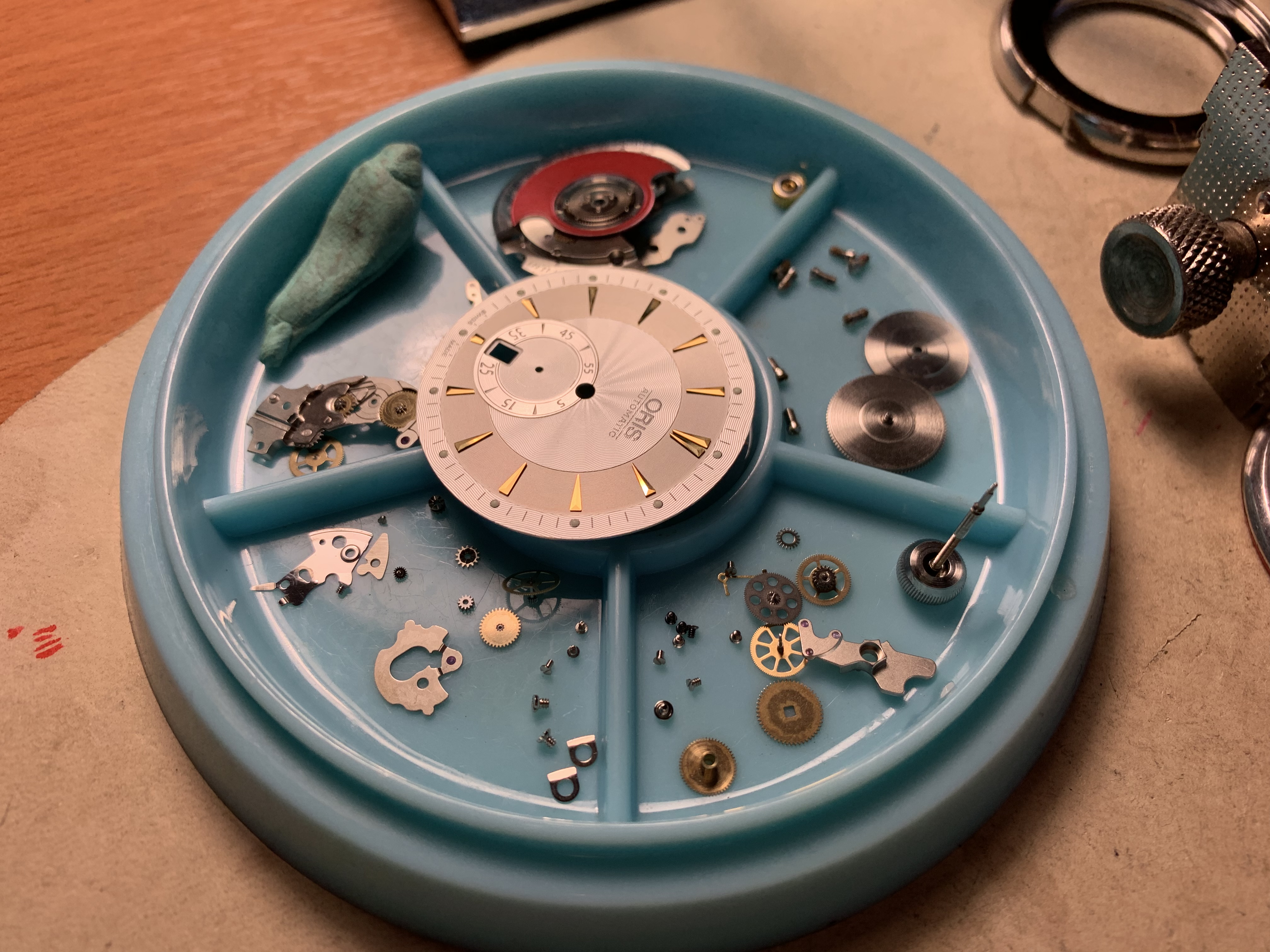 Определенные части часов необходимо очищать сильными чистящими жидкостями, которые повредят другие более деликатные детали, поэтому перед чисткой часы необходимо разобрать. Используйте большое количество воздухонепроницаемых горшков, которые можно пометить в местах расположения деталей. Когда мастера начинают учиться, они любят фотографировать каждый шаг, поэтому используйте свою камеру, чтобы потом вспомнить, куда идут детали. Небольшой совет новичкам: винты не все одинаковые, поэтому Вы не должны смешивать их.