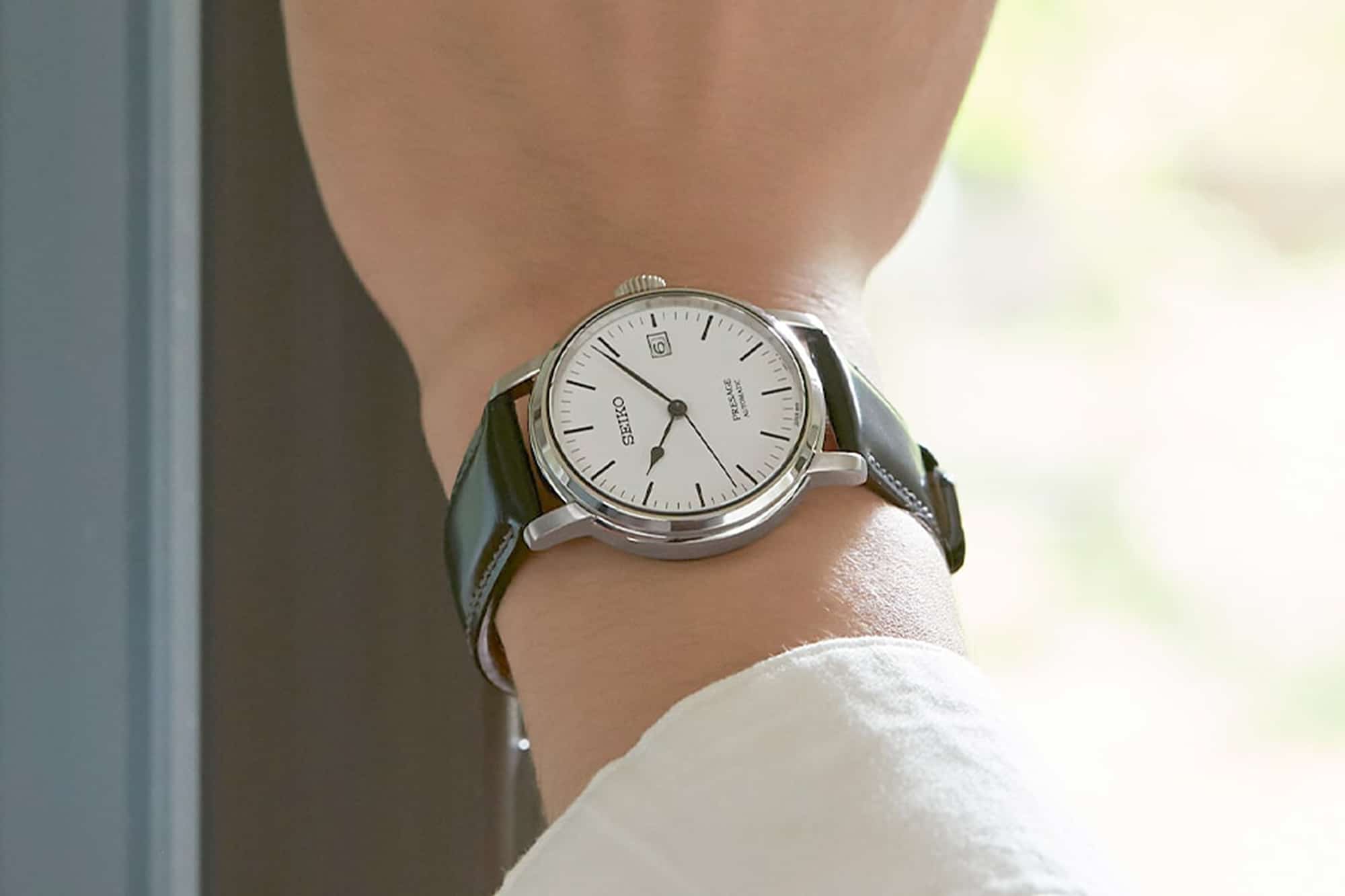 Эти новые часы от Seiko, получившие название Enamel Dial Automatic, вошли в семью бренда. Как следует из названия, в этих часах используется эмалевый циферблат в одном из двух цветовых вариантов: традиционный и ярко-белый, или темно-бордовый. Эмалированные циферблаты невероятно трудно изготовить должным образом, а жесткие допуски означают, что неминуемы провалы. Эмаль обеспечивает блеск и глубину, с которыми не могут сравниться более распространенные и менее трудоемкие методы создания циферблата. Из-за того, как эмаль играет со светом, эти циферблаты общеизвестно сложно сфотографировать, но как только у вас в руках хороший эмалевый циферблат, их уникальные качества становятся очевидными.