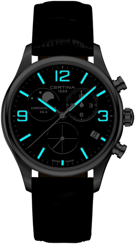 Часы швейцарские наручные мужские кварцевые на ремне Certina C033.460.16.047.00 DS-8 Chronograph Moon Phase