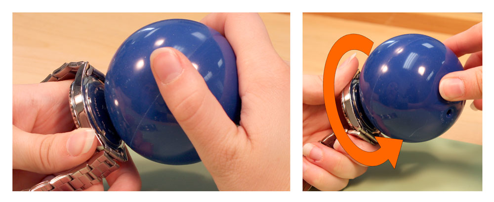 Открытие завинчивающейся задней крышки часов с помощью шара